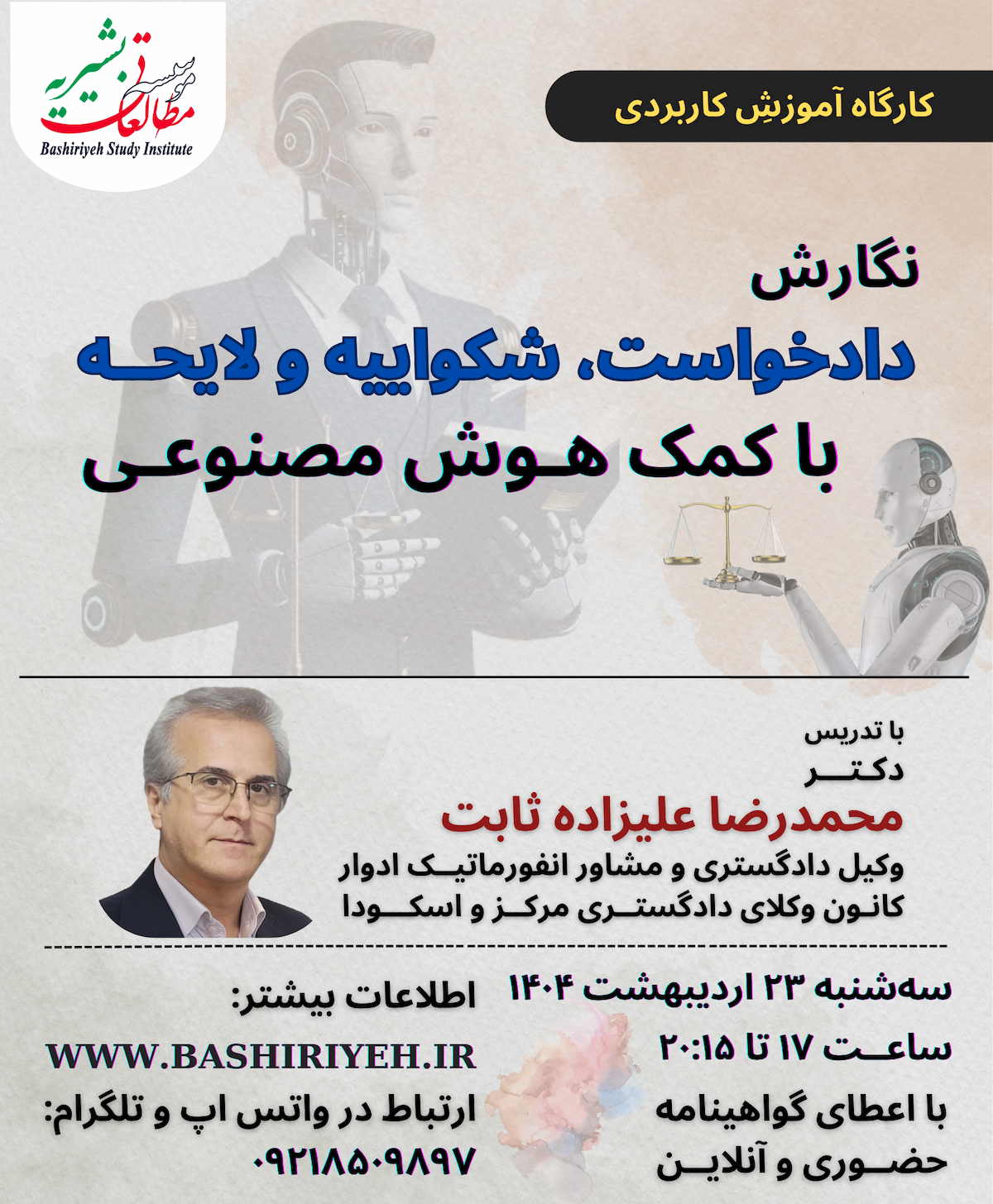 کارگاه آموزشی «نگارش دادخواست، شکواییه و لایحه با کمک هوش مصنوعی»