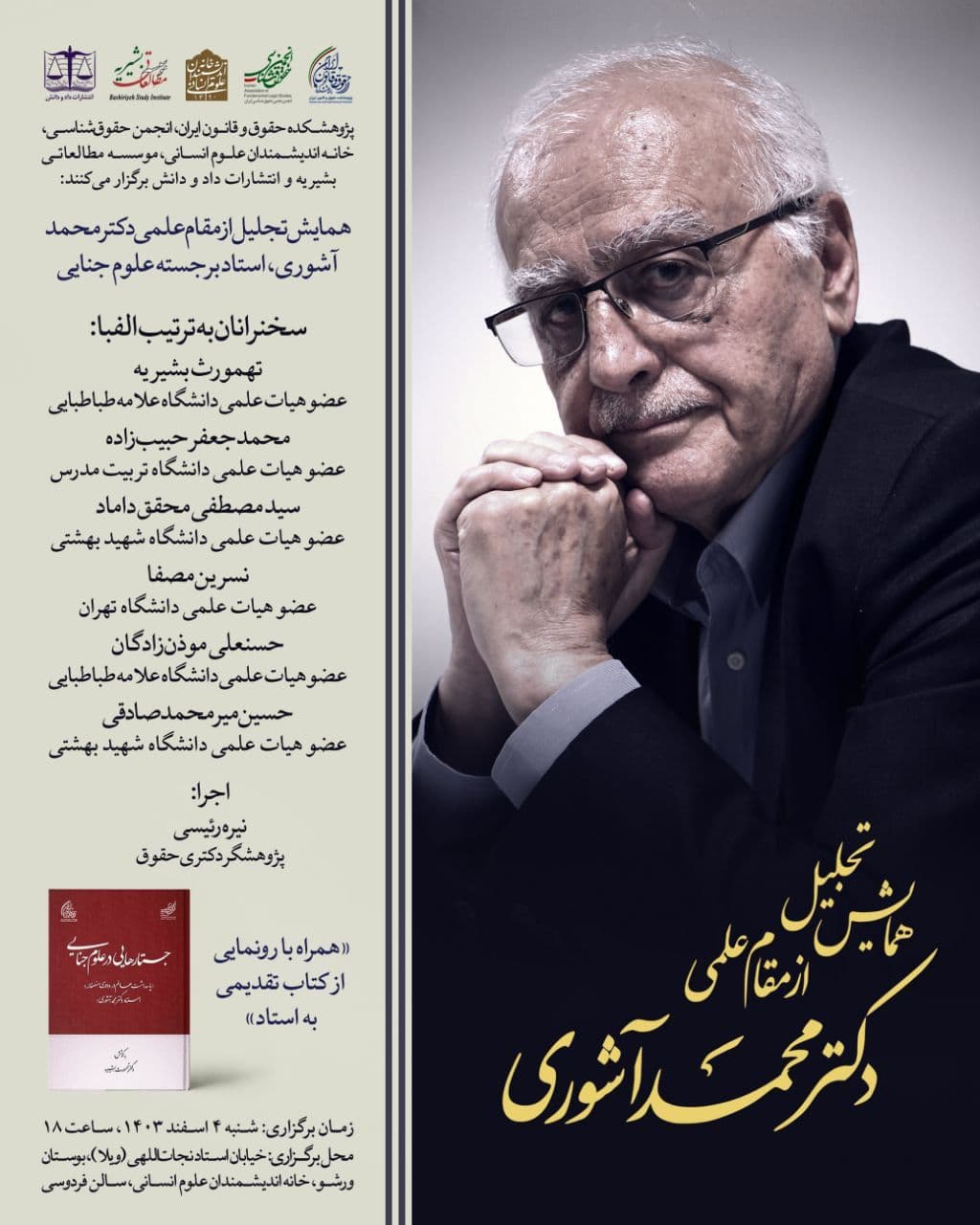 پژوهشکده حقوق و قانون ایران، انجمن حقوقشناسی، خانه اندیشمندان علوم انسانی، موسسه مطالعاتی بشیریه و انتشارات داد و دانش برگزار میکنند: