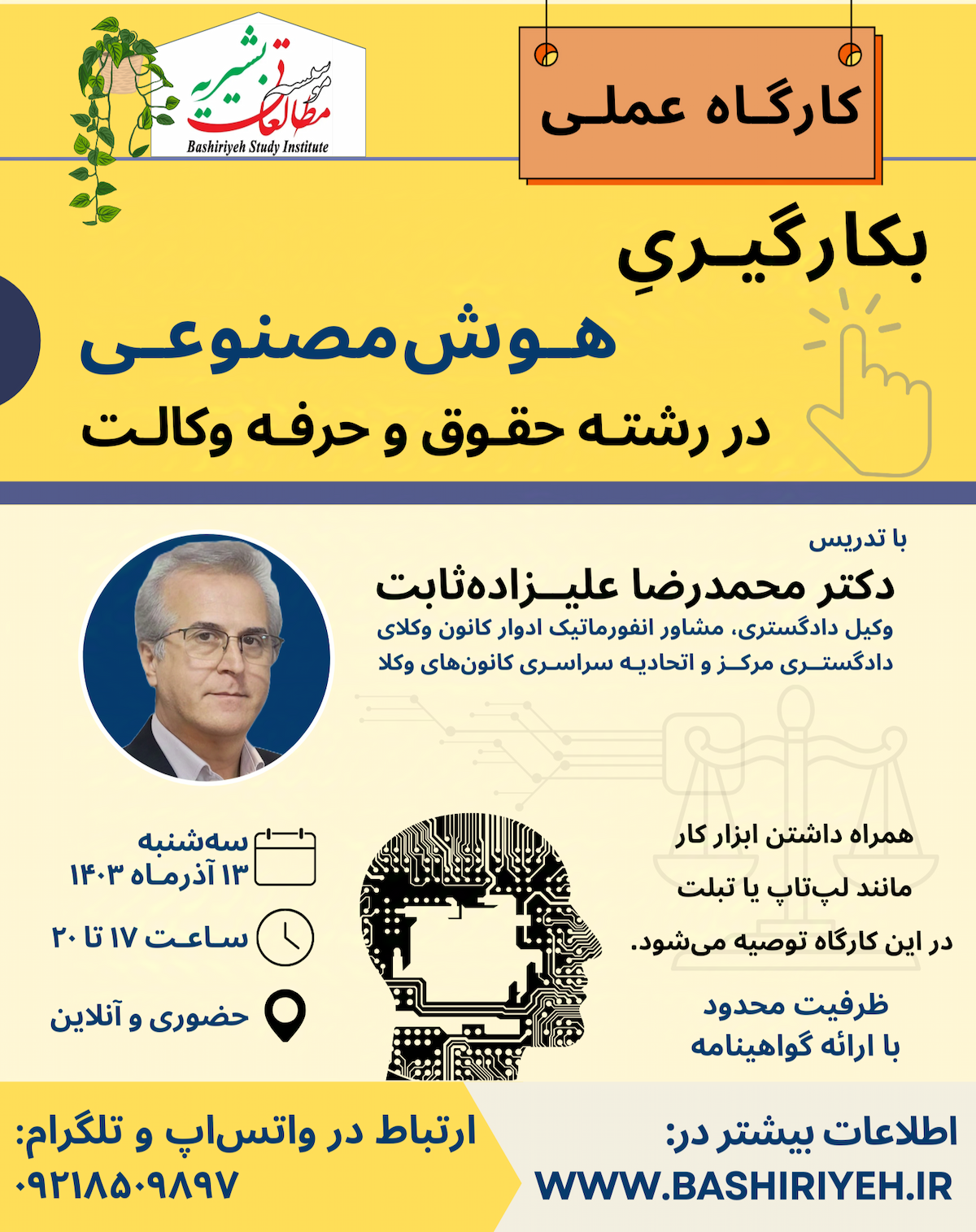 کارگاه عملی: بکارگیری هوش مصنوعی در رشته حقوق و حرفه وکالت